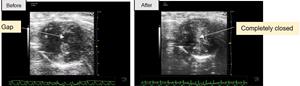 On the left image, there is a small gap in the middle of the LV chamber during a contraction of the heart. On the right, the LV chamber is completely closed during contraction, suggesting a more powerful pump of blood.