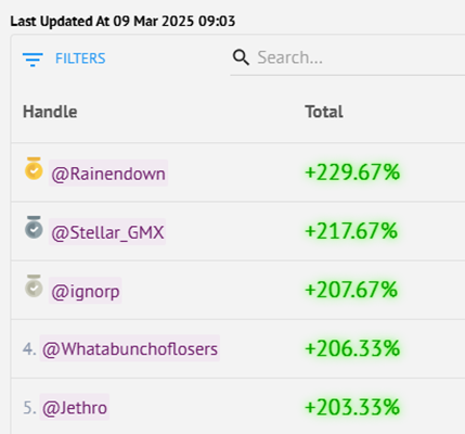 💎 @Rainendown: +229.67% | $HSTR +54%, $IZO +620%, $SONA +15%